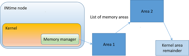 This default allocation for a new node is a single 32 MB area from memory below 4 GB. For compatibility reasons, any previous memory configuration imported from a version of INtime prior to version 6.2 into a current version of INtime will create a kernel area, then a second area equal to the size of the previously-configured kernel area.