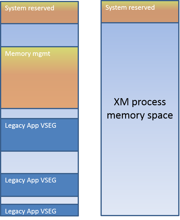 An XM process has two main advantages: there is no practical limit on the virtual memory space available to the process for mapping memory, and there is also a performance benefit on processors of the Intel ATOM family.