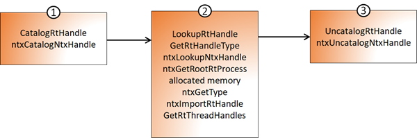 Get the root process handle | ntxGetRootRtProcess GetRtThreadHandles |