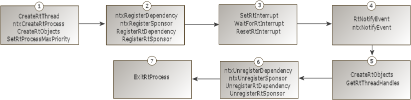 Applications can create another real-time process. Windows applications can call ntxCreateRtProcess. Real-time applications can call CreateRtProcess.