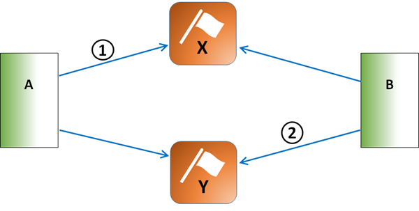 1. Thread A requests and obtains control of region X. It also needs control of region Y.