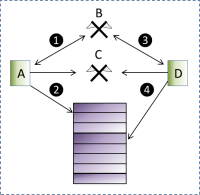 The second bottleneck, priority inversion, occurs when a low-priority thread obtains the required units to access a resource, then is preempted by a medium-priority thread, which is then preempted by a high-priority thread that needs to access the resource. This shows what could happen: