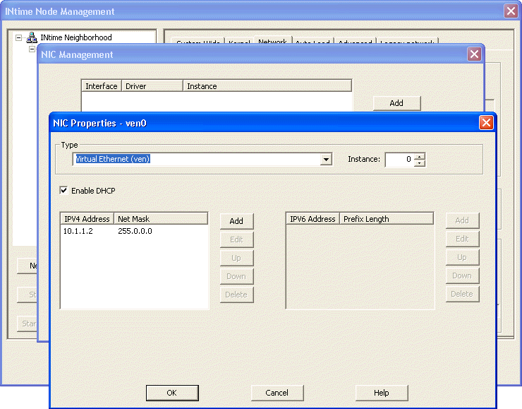 Note: INtime Virtual Ethernet is not ideal for high-performance networked application. If you need high performance, real-time Network capabilities, it is strongly recommended to assign dedicated network interface adapters to each INtime node and Windows.