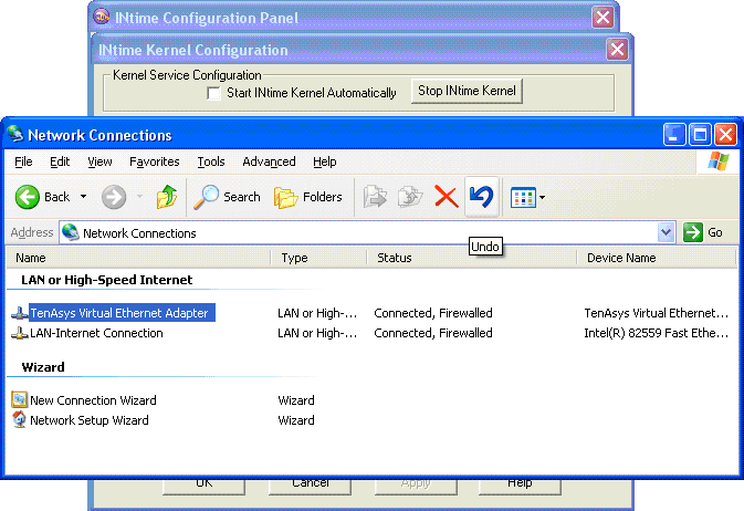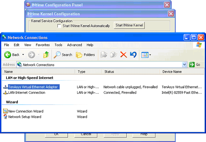 After you start the INtime kernel the Network Connection status will change to show that the interface is connected and working.