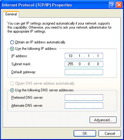 For our purposes we select two IP addresses from a standard non-routable (private) IP subnet:
